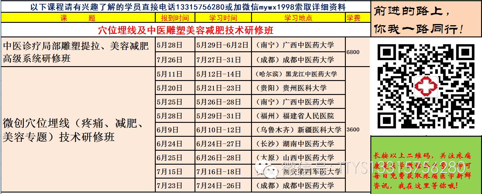 注明:鉴于保证培训班的教学质量,本班限额30-40人之间,请学员务必提前电话报名,以便安排解剖标本。提前报名者可获得400G全国疼痛培训班相关音视频和文字资料。