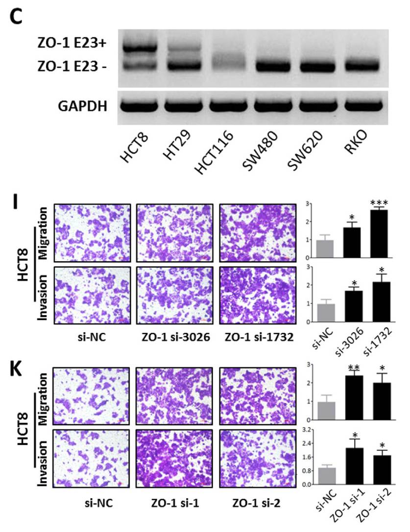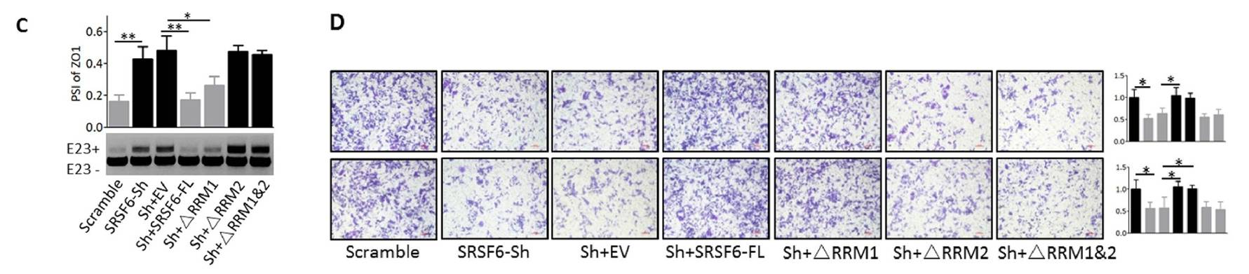 5、ZO-1在CRC发展中的作用(体外实验验证):RT-PCR 、siRNA、SRSF6 shRNA、Transwell试验、