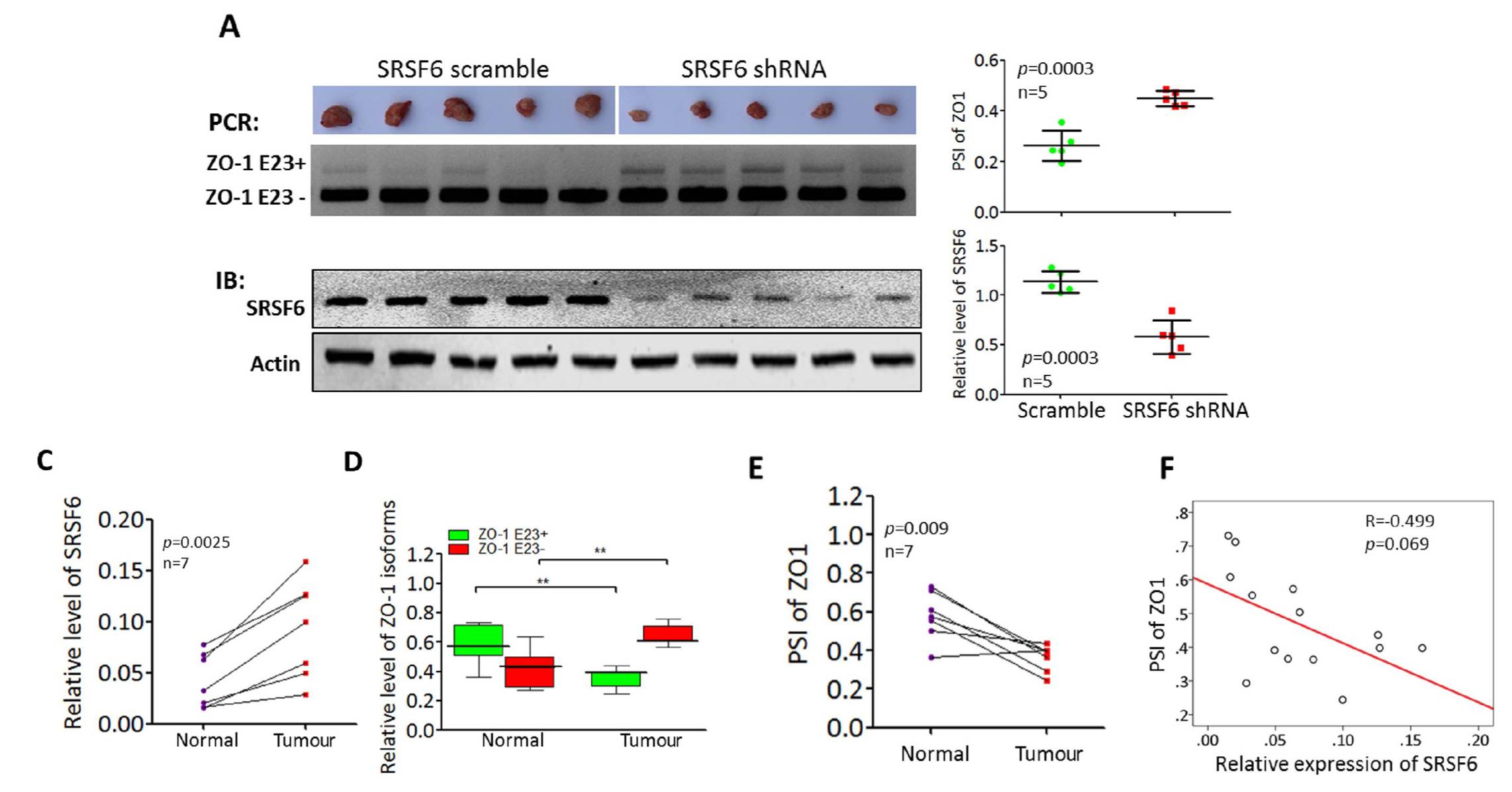 6、SRSF6通过调节ZO-1 AS促进肿瘤进展(体内功能研究):动物模型构建、RT-PCR、免疫印迹、shRNA等