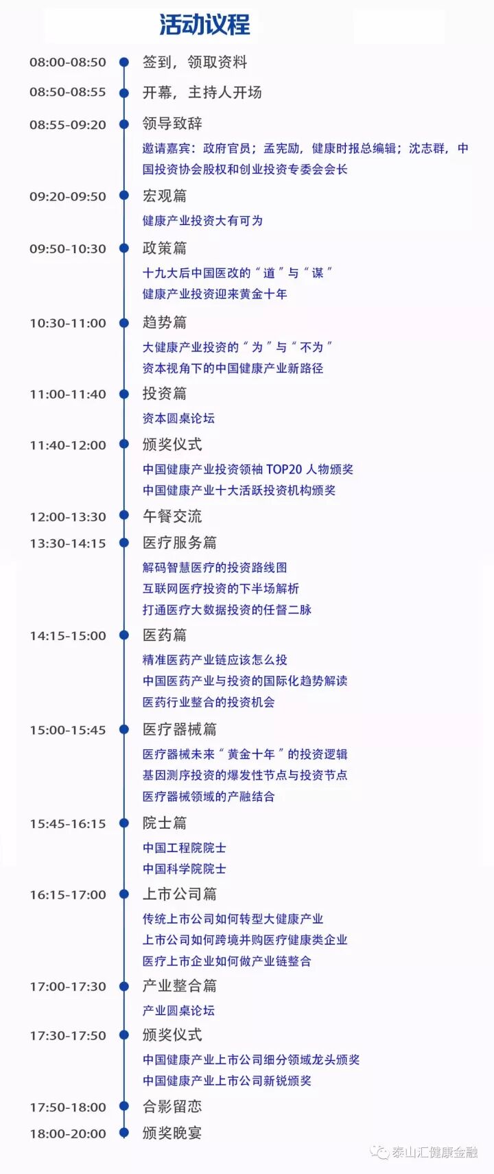 2017年12月15日,健康时报、泰山汇等将在北京联合举办首届国家健康产业投资领袖峰会。届时,著名科学家、国家相关部委领导、投资领袖、健康产业企业家等各细分领域领导者1000余人参会。