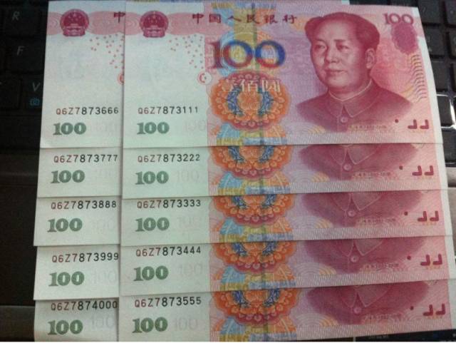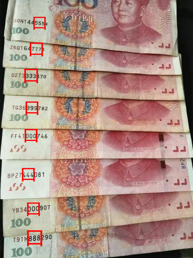 凡楚旺人凭前三位或后三位相同号或顺子号的百元人民币一张
