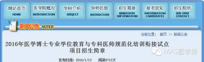 2016年医学博士专业学位教育与专科医师规范化培训衔接试点项目招生简章