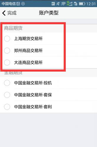 是选择需要开通的期货交易所,首次开通只能选择三家商品期货交易所,您可根据需要勾选:上海期货交易所、郑州商品交易所、大连商品交易所。