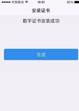 数字证书安装完成后,页面会提示”数字证书安装成功“的字样,点击”完成“按钮。