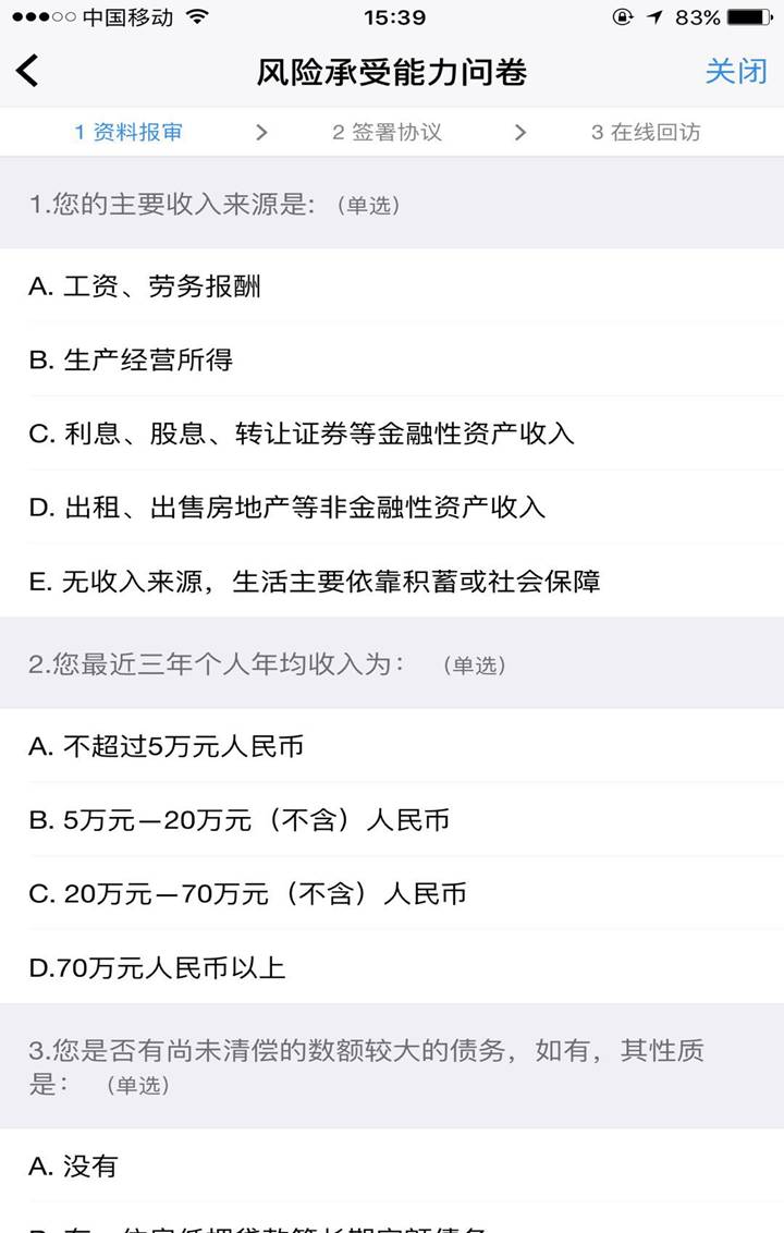 勾选完成后,点击按钮“下一步”,进入适当性调查。