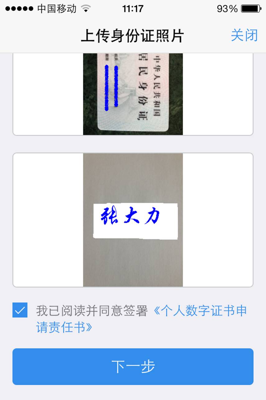 上传身份证正反面照片和签字照(在白纸上签名,拍照上传)