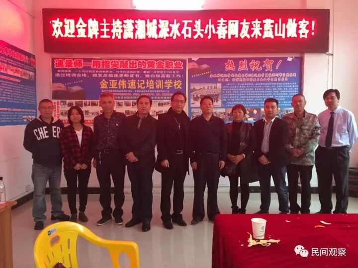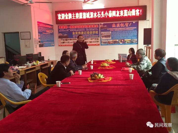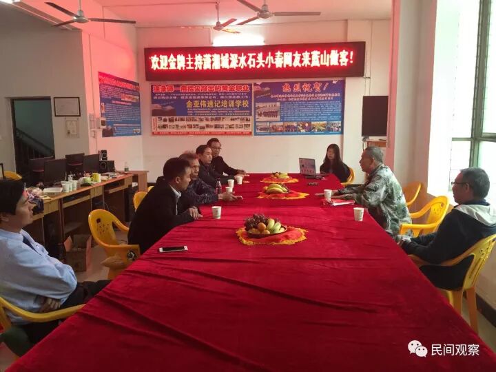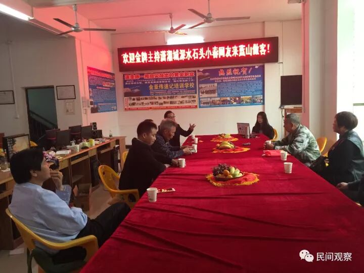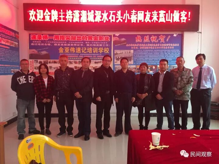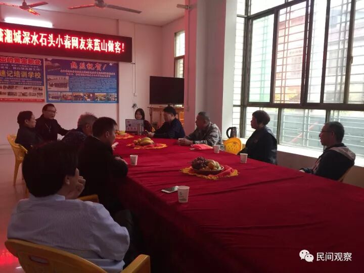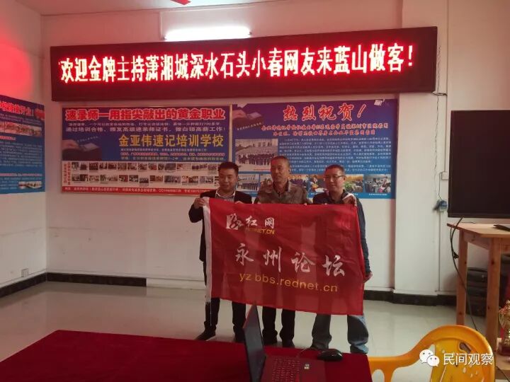 11月11日,红网永州论坛版主眷恋小春和知名网友金牌主持、潇湘城、深水石头相约从永州冷水滩来到蓝山。上午,他们早早来到了蓝山,参观了一些地方。下午,眷恋小春版主和几位知名网友一起来到金亚伟学校进行座谈。参加座谈的蓝山网友有:法学硕士、龙溪老宁、王医生、三哥、肖长英等。