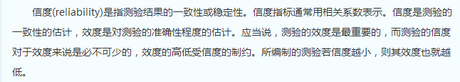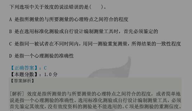 今天晚上的课遗留了一个待最终解释的题目。关于测验的准确性的是信度还是效度。