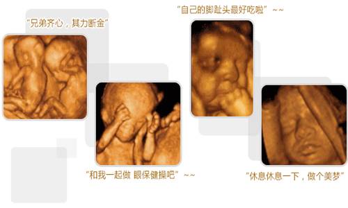四维彩超不再是仅仅感觉宝宝的呼吸和运动,而是可以亲眼目睹他们的一举一动和乖巧的秀容。更为重要的是,四维彩超能够多方位、多角度地观察宫内胎儿的生长发育情况,为早期诊断胎儿先天性体表畸形和先天性心脏疾病提供准确的科学依据。