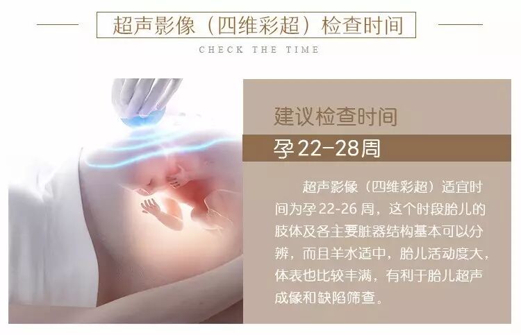 怀孕22周~28周之间都可以进行超声筛查,但最佳时间是24周~26周,此时胎儿各主要脏器已发育,羊水量适量、胎儿已进入腹腔,便于胎儿畸形的筛查。