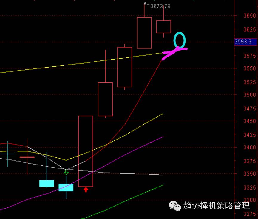 所以,我的观点还是涨的多的请了结一部分,涨的少的再继续持股待涨。下面分析一下有可能有出现的二种走法,其实无论哪个走法,回调就是加仓的机会。明天第一种走法是缩量回踩3585点的250均线,这就是给大家送钱的走势。踩了就全仓干它!