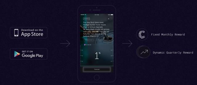 而你的目标很简单:根据你自己的预测和分析,去给每个问题一个你自己的预测值。比如:爱沙尼亚在2018年4月1日之前发布政府背书的加密货币的可能性有多大?(请给出0%到100%的可能性)再比如:根据你的预测,比特币对美元价格,在美国东部时间2018年1月1日早上九点预计将会达到多少?(请给出你的预测价格)而用户在参与预测的同时,不需要自己花钱充值,并且只要预测够准确,每个月底的时候用户可以得到30到500美金不等的奖金激励(ICO之后将会发给用户CND代币)。说白了就是一个你免费参与问答,与世界各地的用户拼脑力和智慧,同时还能获得金钱和荣誉。而参与的人越多,Cindicator收集到的人群数据就越多,对其自己内部的分析师分析市场就越有利,再结合自己背后的算法,也就越能做出越准确的预测。看起来是一个非常双赢的想法。