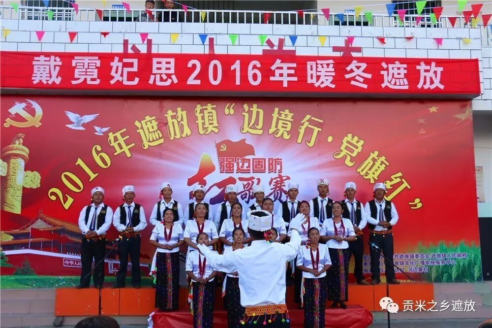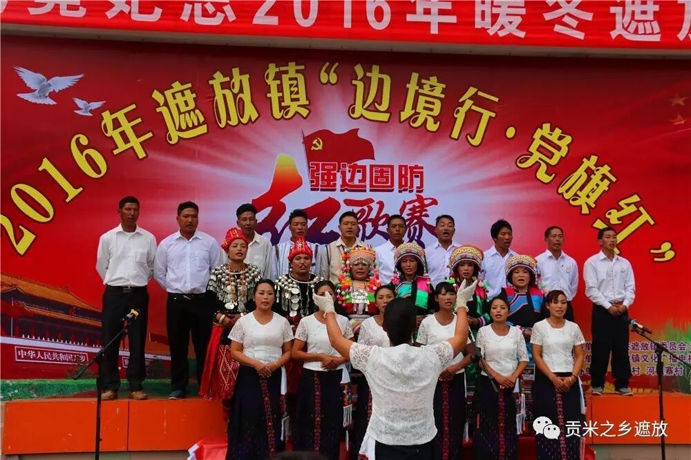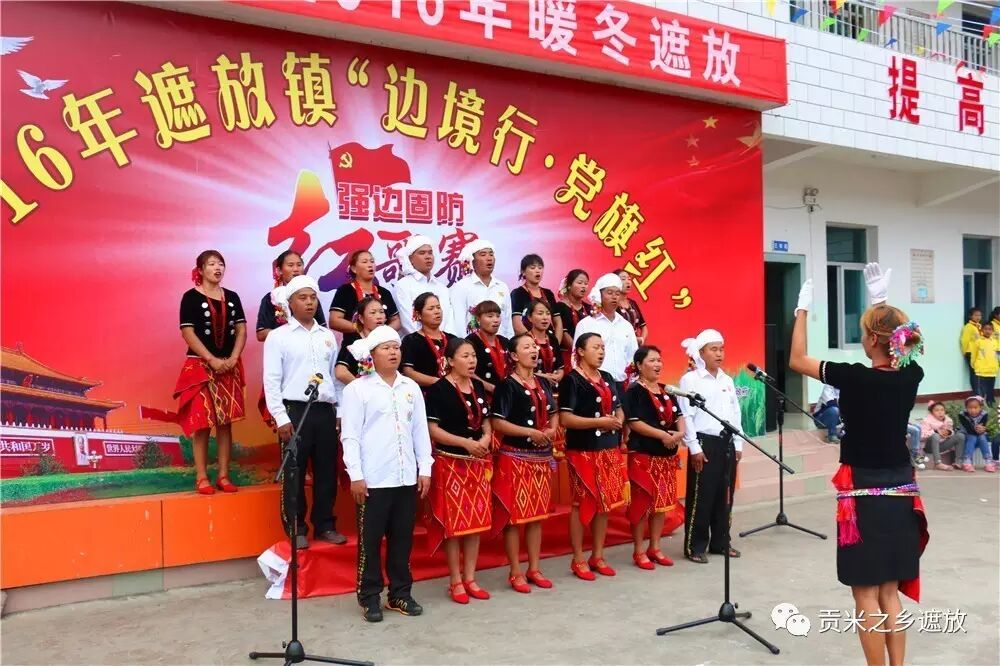 。比赛此起彼伏,富有地方民族特色,有的用汉语唱红歌,有的用景颇语唱红歌,有的边唱边跳民族舞;一曲曲高亢激扬的红歌响彻边境线上,一首首催人奋进的红歌在祖国的西南边陲回荡,一句句“红词”唱出了遮放边民一心向的心声,一次次把比赛推向高潮。