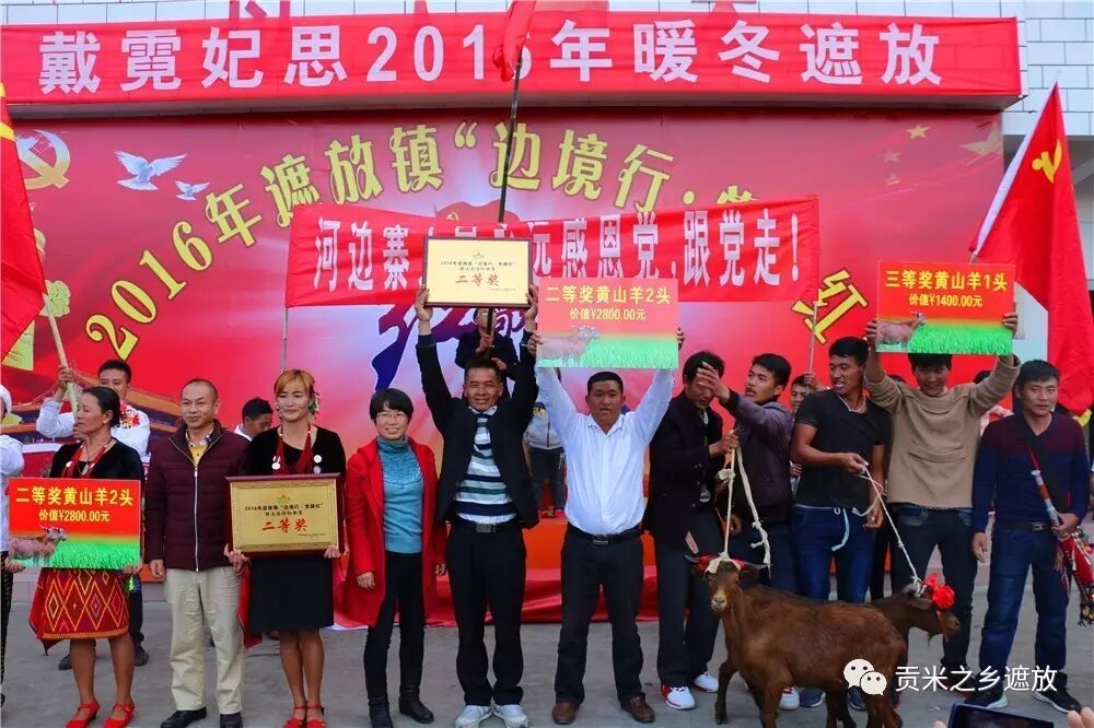 经过激烈角逐,河边寨营盘村小组荣获本次比赛一等奖,牵走1头价值5000多元的“红牛”;河边寨和平、邦达邓中2个村小组分获二等奖,分别领走2只“红羊”;河边寨杏帕、团坡和邦达段家寨3个村小组分获三等奖,分别牵走1只“红羊”。