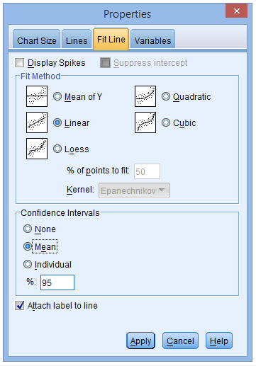 (7) 关闭Properties和Chart Editor窗口,Output Viewer窗口会弹出带有置信区间和预测区间的散点图