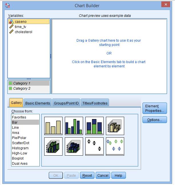 (2) 在Chart Builder对话框下,从Choose from选择Scatter/Dot