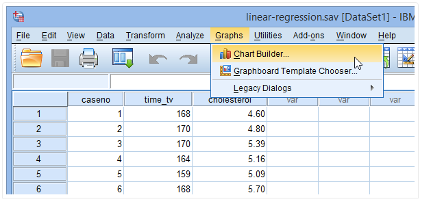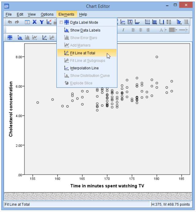 (2) 将看电视时间(time_tv)和胆固醇浓度(cholesterol)分别放入Independent和Dependent栏