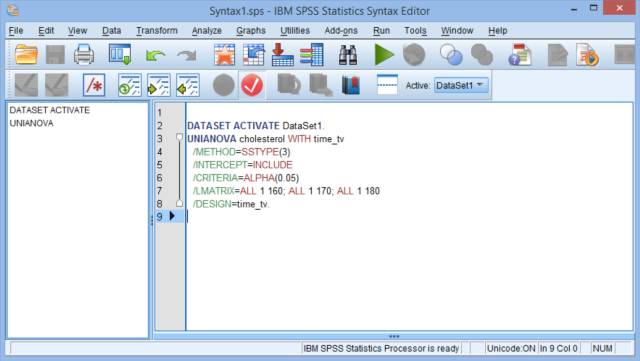 (3) 点击Paste,出现IBM SPSS Statistics Syntax Editor窗口如下: