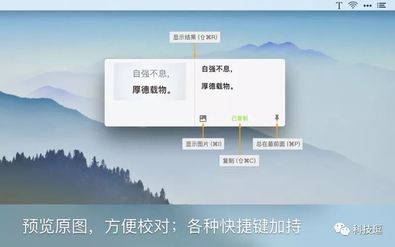 iText 自带截图功能,只需按下 ⇧⌘1 快捷键、截取屏幕任意位置,即可提取该图片中的文字。