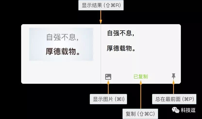 可使用快捷键 ⇧⌘R 快速调出识别结果窗口
