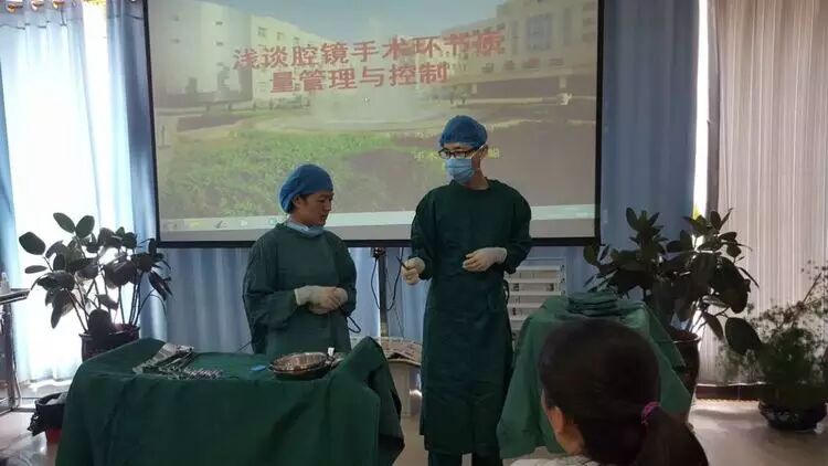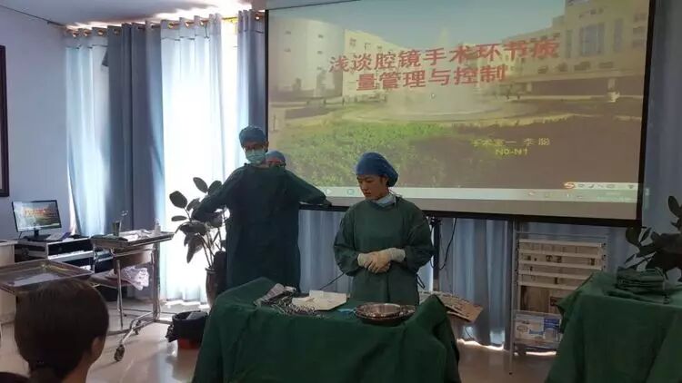 培训方式多种多样:采用不同的操作演练方法:与手术医生一起模拟手术现场的演练、手术前后的安全核查、亲身体验手术体位摆放的练习、器械摆台操作、外科手消毒、无接触带无菌手套、穿无菌手术衣等的规范化培训。