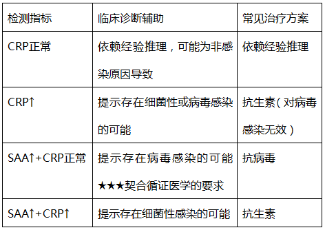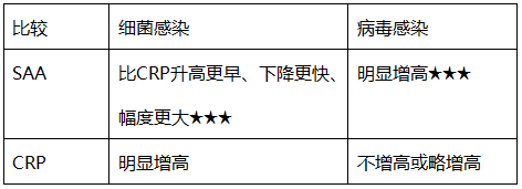 CRP是细菌感染的敏感指标,SAA是细菌和病毒均敏感指标。