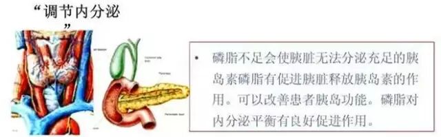 卵磷脂不足会使胰脏机能下降,无法分泌充分的胰岛素,不能有效地将血液中的葡萄糖运送到细胞中,这是导致糖尿病的基本原因之一。如每天食用20克以上的卵磷脂,则糖尿病的恢复是相当显著的。很多病人甚至可不必再注射胰岛素。特别是对糖尿病坏疽及动脉硬化等并发症患者更为有效。