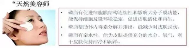 卵磷脂是一种天然的解毒剂,它能分解体内过多的毒素,并经肝脏和肾脏的处理排出体外,当体内的毒素降低到一定的浓度时,脸上的斑点和青春痘就会慢慢消失。卵磷脂还具有一定的亲水性,并有增加血红素的功能,如果每天服用一定量的卵磷脂,就能为皮肤提供充分的水分和氧气,使皮肤变得光滑柔润。