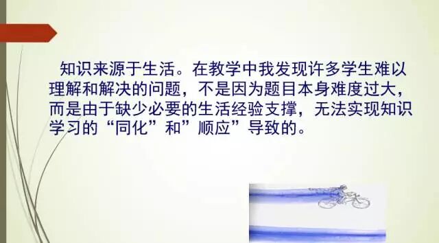 - 三是生活化,即打破知识教学与生活相脱节的局面,回到具体的生活情景中组织课程教学活动。