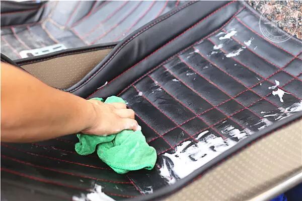 最后,会将内饰清洗后的所有真皮和塑料内饰,进行上光,上蜡处理,更深层次的保护内饰。