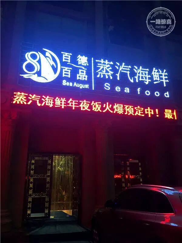 百德百品蒸汽海鲜南七店位于金寨路与太湖路交口,琴港不夜城大院内。院内就可以免费停车,特别的方便。