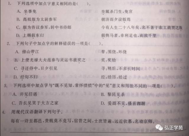 如:(1)高考“扬州辟从事吏”同课文的“连辟公府不就”中的“辟”;(2)高考“飞骑因番请见,先涕泣不自胜”同课文的“沛公不胜杯杓”中的“胜”;(3)上海卷中“不肖人也,不足爱也”同课文“向使六国各爱其地”中的“爱”;(4)“既有令名,复求寿考”同课文的“便言多令才”。(5)高考“城之不拔者二耳”基本与“拔石城”同;(6)“齐人追亡逐北”完全同《过秦论》中的“追亡逐北”。