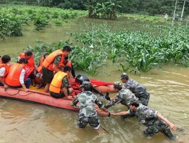 记者在现场看到救援官兵们正用橡皮艇有序的运送受困群众,为保证受困群众不遗漏,官兵们还挨家挨户进行搜查,确保人民群众安全。