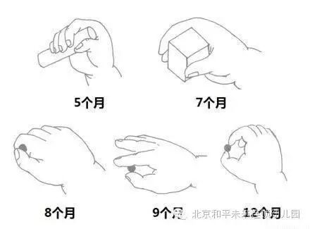 继续让小儿练习够取小物体,物体要从大逐渐到小,从近逐渐到远,让小儿练习从满手抓到拇、食指抓取。