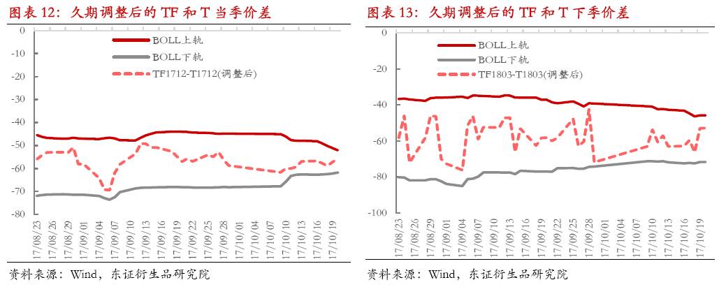在做调整时,我们把国债期货的价差根据久期的比值来进行调整,其中国债期货的久期是五日平均久期。根据策略的级别,我们偏短期的策略适用于1:1的配比,策略级别在两周以上的情况适用于久期中性的配比方法。