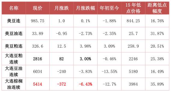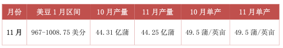 USDA11月供需报告仅小幅下调产量和期末库存,再次令期盼单产下调的多头失望,报告当天期价冲高回落,但在中国需求的推动下止跌反弹,美豆再次回到了1000美分附近。目前美豆产量的影响已经慢慢散去,美豆出口以及南美天气才是大豆价格波动的关键因素。