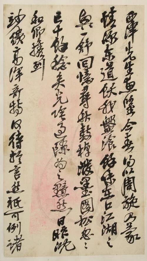 立凡四页,扶病书之。大胆老面皮,望亮(谅)我 。兄题精绝,或者可以浑而出之。胡卢(葫芦)可否揩漆?望便中示明。弟俊顿首。十三日腰楚可畏。鹤翁六兄先生。顾六老爷。外画册。
