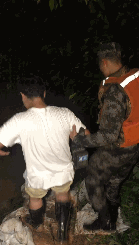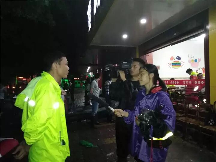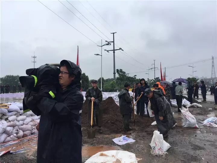25日晚,《民生6+1》记者张恒、主播王佳丽在上华街道一处堤坝采访抗洪战士处置险情。为了拍摄到战士抢险的关键性画面,张恒提着摄像机跳入江水中,在两名战士的帮助下,趟水到抗洪战士的正对面,拍摄下宝贵的画面。而这一幕,也被站在身后的王佳丽含泪记录下来。