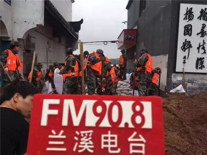 台新闻中心根据台党委的部署在原有的四组值班人员基础上,又增派四组记者,赶回台上班的记者全部前往防汛重点乡镇、地点采访。FM90.8兰溪电台发挥广播媒体作用,从早八点开始,打通全天直播。《兰溪之窗》网站接入智慧及交警平台,开启“微直播 | 兰城水情即时报”。 电视、电台、网站、即时报全面出击,雨情、汛情、路况全面囊括!