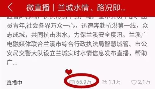 “微直播|兰城水情、路况即时报”专题页面点击近66万