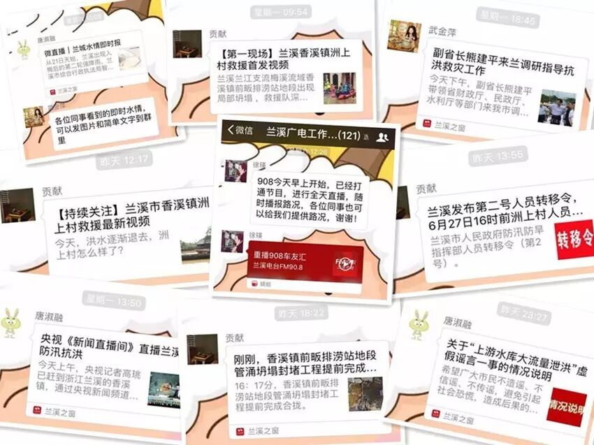 从即时报到微信公号的推送,从图文直播到网络直播的试水,兰溪广电融媒体一直在路上。洪水来临,对融媒体的小编和技术大拿来说,又是一道考题。
