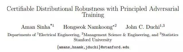 论文 1:Certifiable Distributional Robustness with Principled Adversarial Training