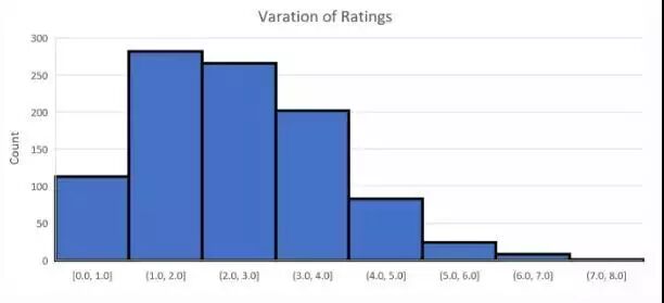 上图显示了相同论文得到评分的最大差值。我们观察到,对于大多数(约 87%)论文来说,最大差值小于 3。