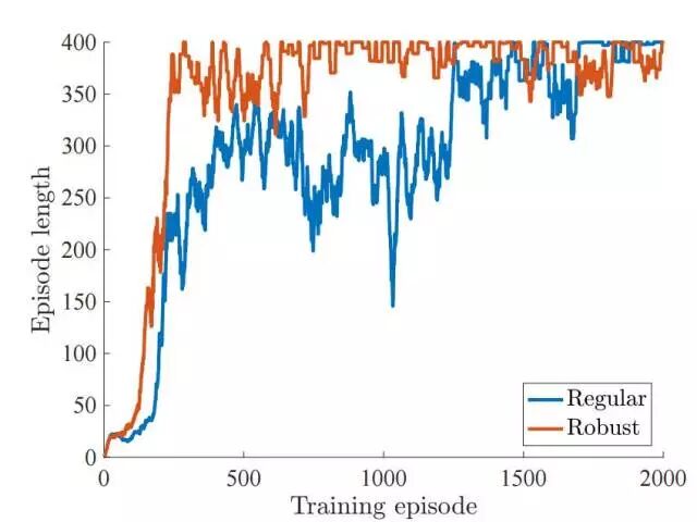 如下所示,鲁棒性的模型在原版的马尔科夫决策过程(MDP)中要比一般的模型学习更高效: