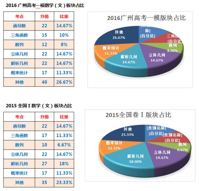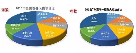 本次考试的考点分布比例与2015年全国卷十分接近,比如概率统计,解析几何,立体几何,各板块分布很平均。但略有不同,比如函导数分值比重略有下降。而题型和难度上,与全国卷靠近,尤其数列部分和解析几何的题型和难度都与全国卷相差无几。