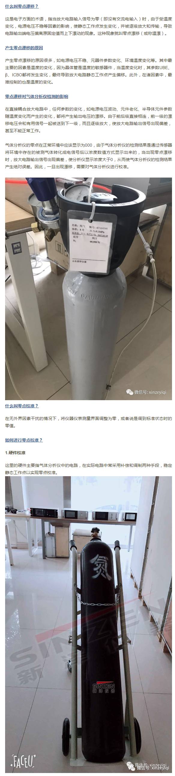 气体分析仪在出厂前一般需要先用一个零点标气和几个标准浓度的气体对仪器进行标定,得到标准曲线储存于仪器之中。测定时,仪器将待测气体浓度产生的电信号同标准浓度的电信号进行比较,计算得到准确的气体浓度值。分析仪器在使用过程中,由于受到电压波动、元器件参数及环境温度变化的影响而出现零点漂移,则需要定期采用零点标气对分析仪进行零点校准,以保证气体分析仪测量的准确性。