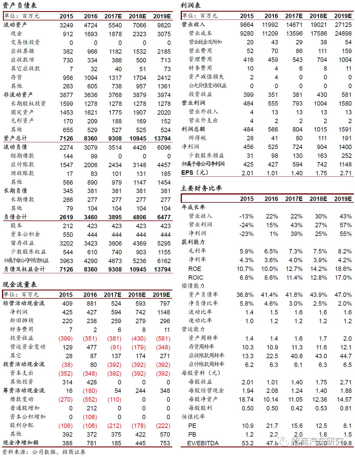 主机厂周期对零部件的弹性来源于“量升价提”,享受下游销量增速同时,内外饰每年年降3-5%,新车上市第一年无疑是盈利结构最优之年。综合两方面因素,我们预计公司17-19年eps分别为1.4/1.75/2.71元,对应18年12X估值。