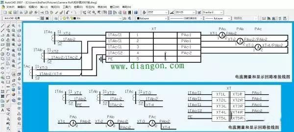 现在,我们再来看电流测量和显示回路图。不过,这里的图已经是准接线图和接线图了。如下:
