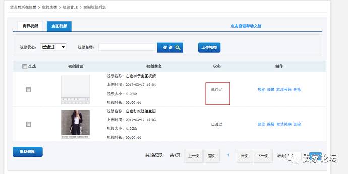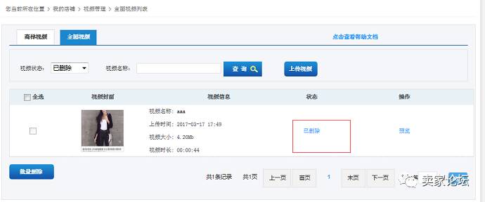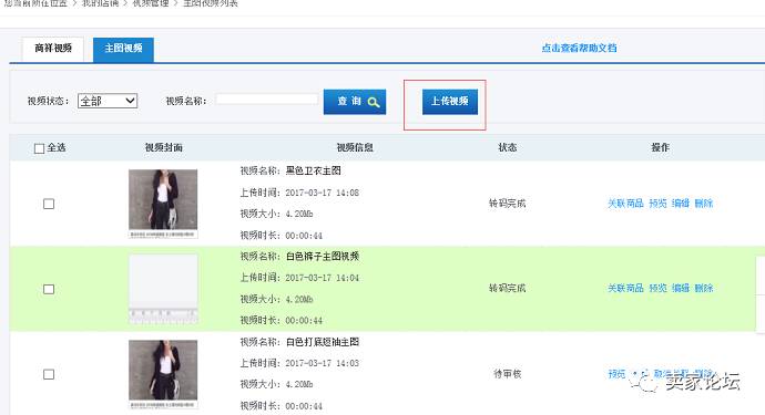 1.先进入shop端-我的店铺-视频管理页面,点击主图视频tab,可以看到主图视频列表页面: