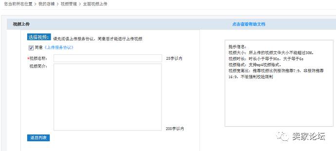 2.点击上传视频按钮,进入视频上传页面,请先仔细阅读上传服务协议,同意并需勾选上传服务协议时,选择视频按钮才可高亮可点击